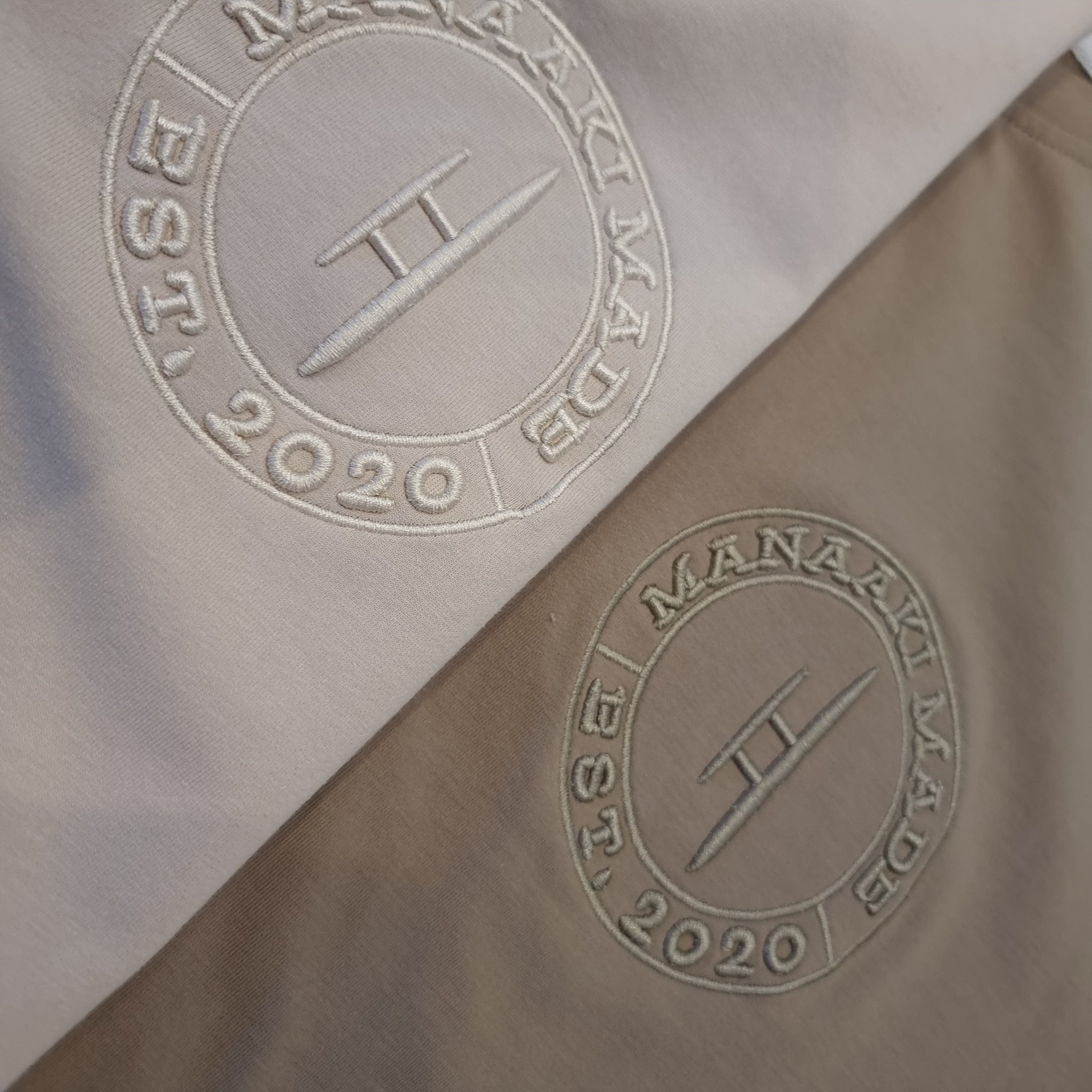 Premium quality t shirt with Manaaki Made 2.0 embroidered logo design.